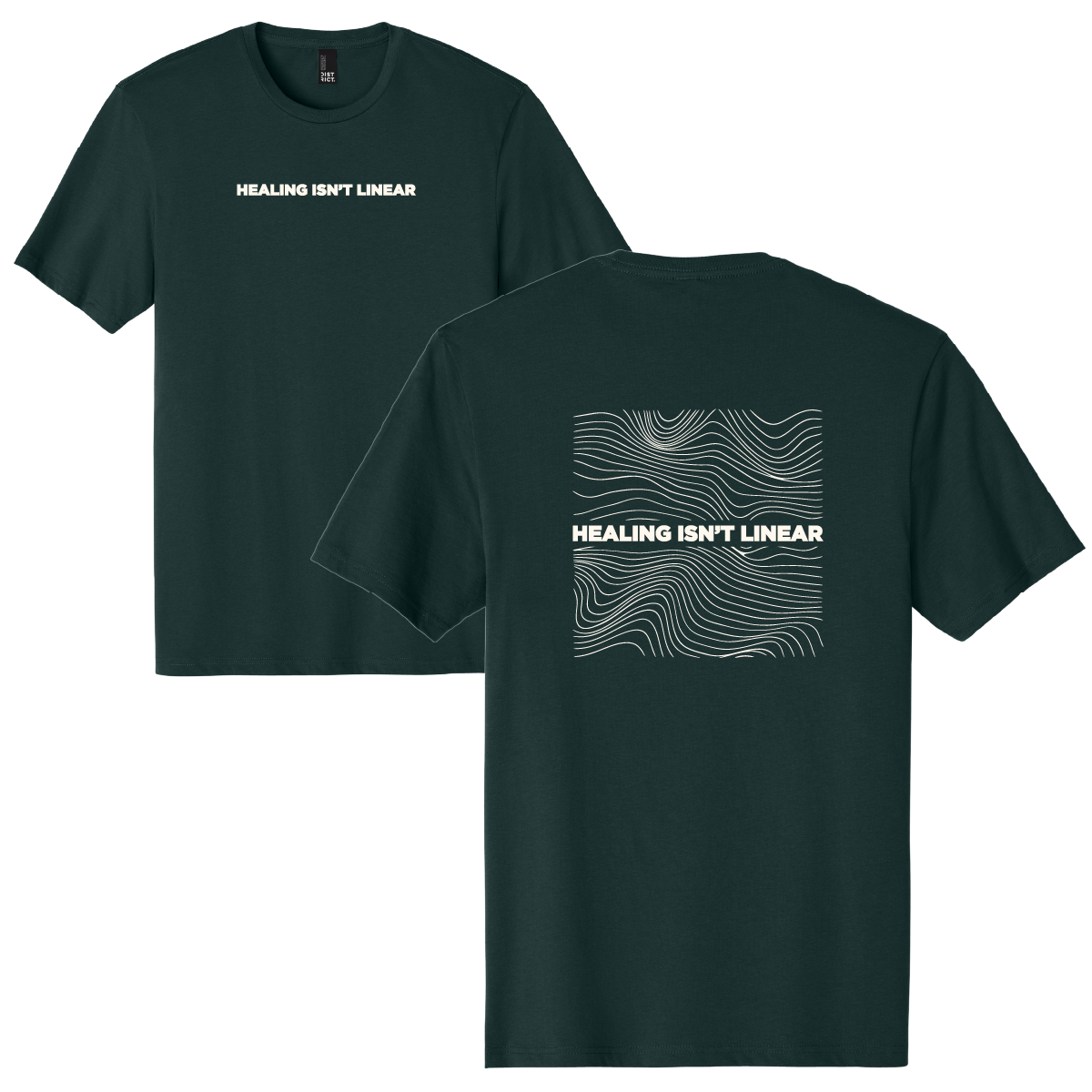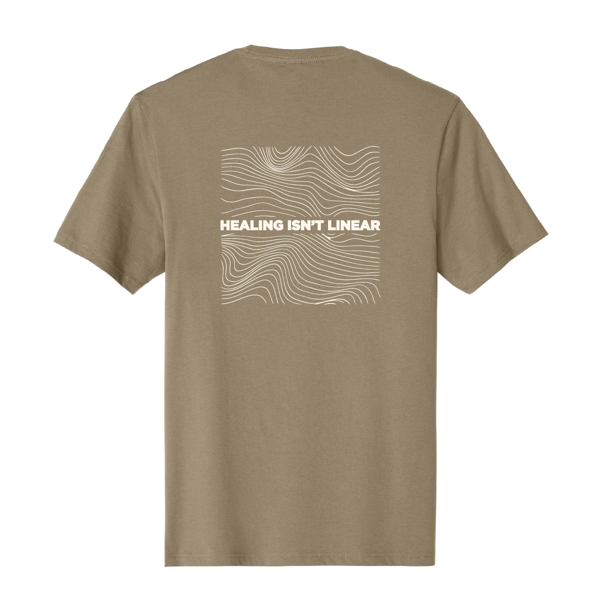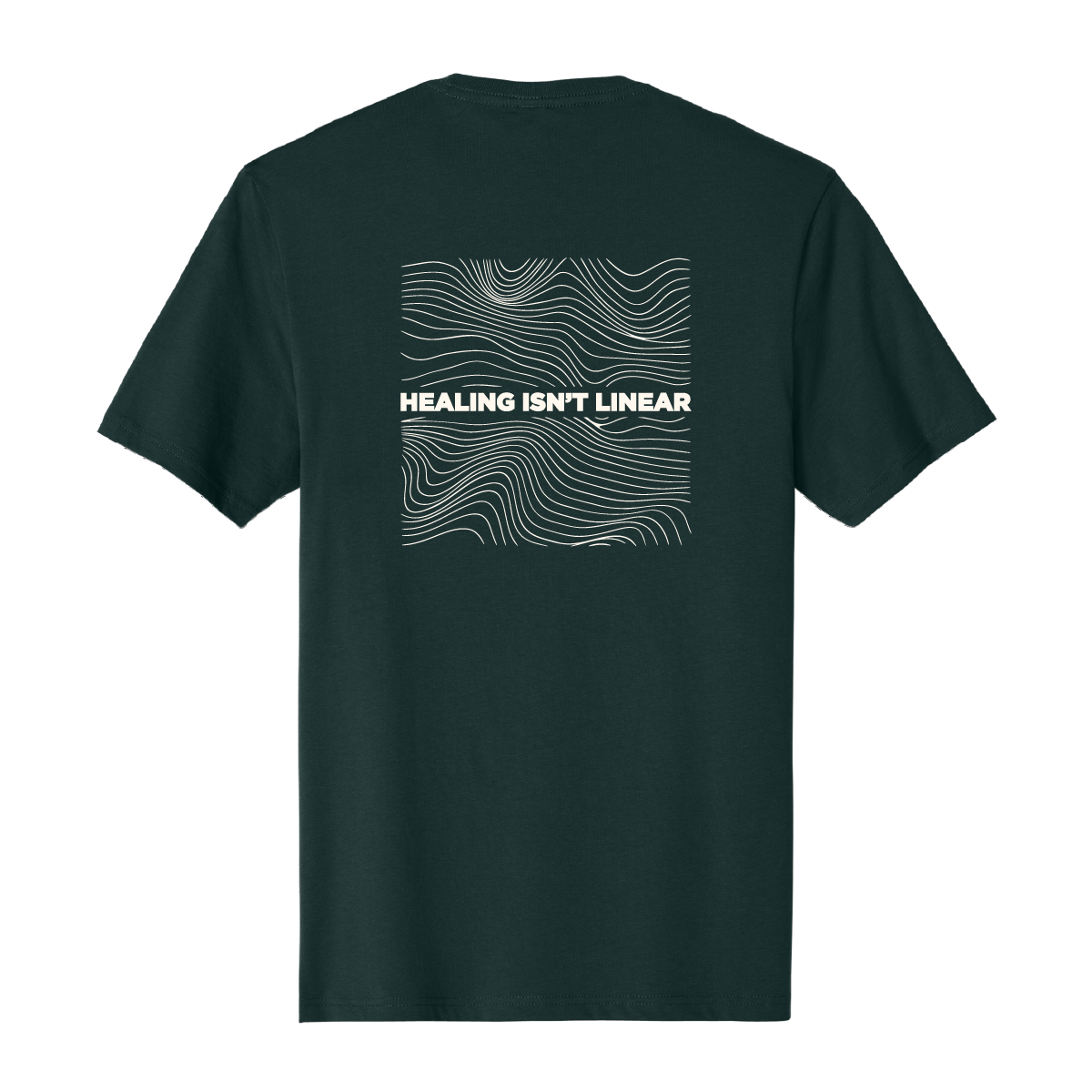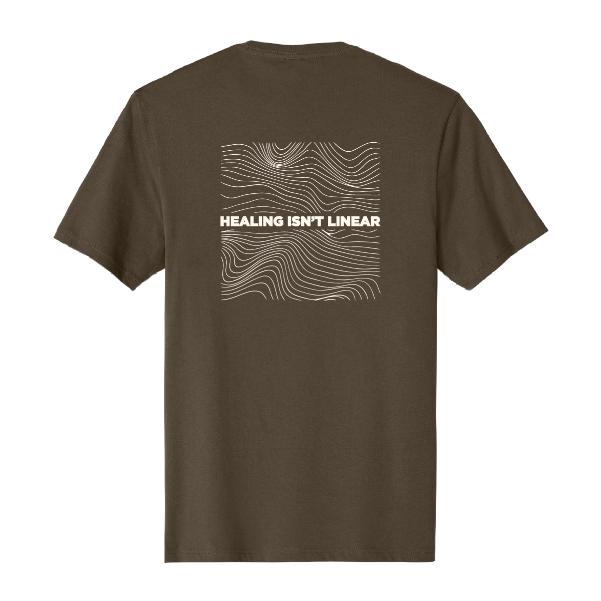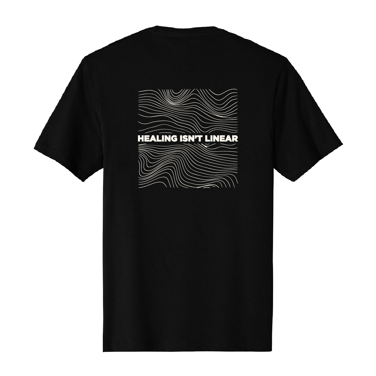 Our Healing Isn’t Linear Tee comes in a retail fit and is as comfy and it is trendy. Features “Healing Isn’t Linear” text on the front with topography and text design on the back.